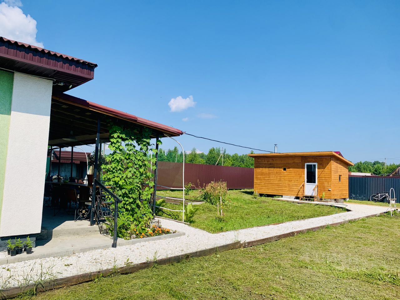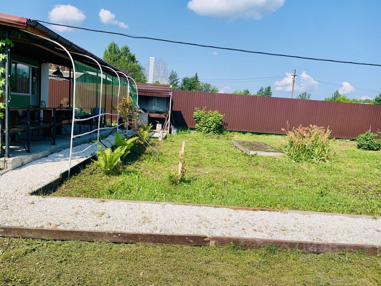 Заборы по периметру , калитка ручной работы , и ворота въезд под автомобиль .