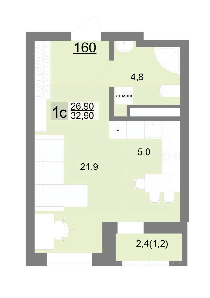 Общая площадь32,9 м2
