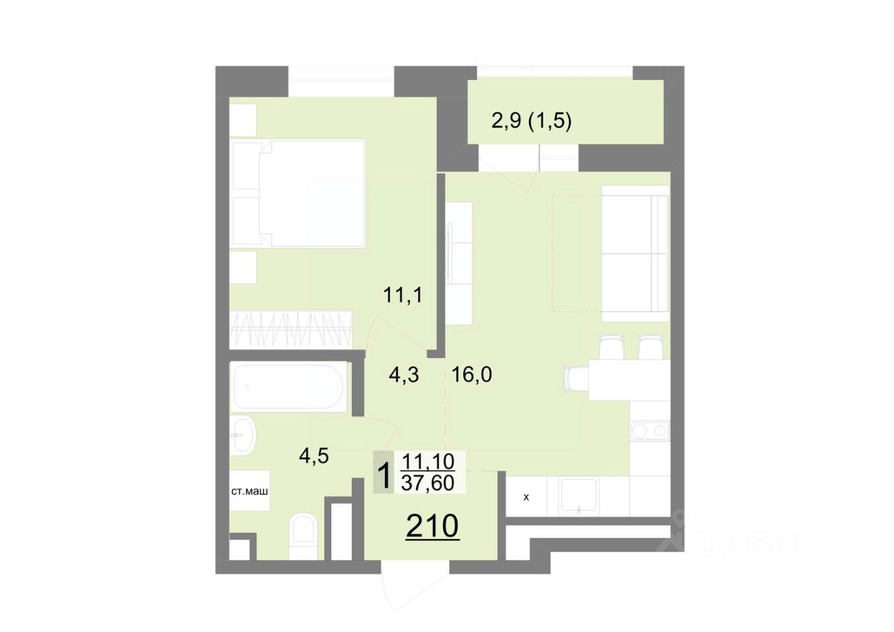 Общая площадь37,6 м2