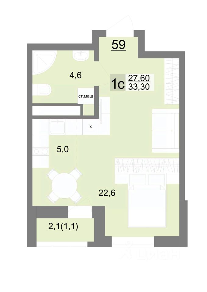 Общая площадь33,3 м2