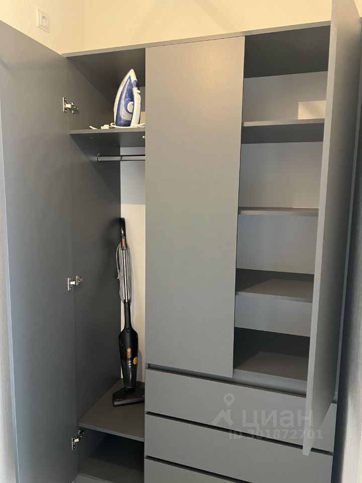 В квартире имеется все необходимое для комфортного проживания: кухонный гарнитур, холодильник, духовка, индукционная плита, чайник, микроволновка, раскладной диван, вместительный шкаф, пылесос, утюг, стиральная машина, сушилка для белья и гладильная доска.