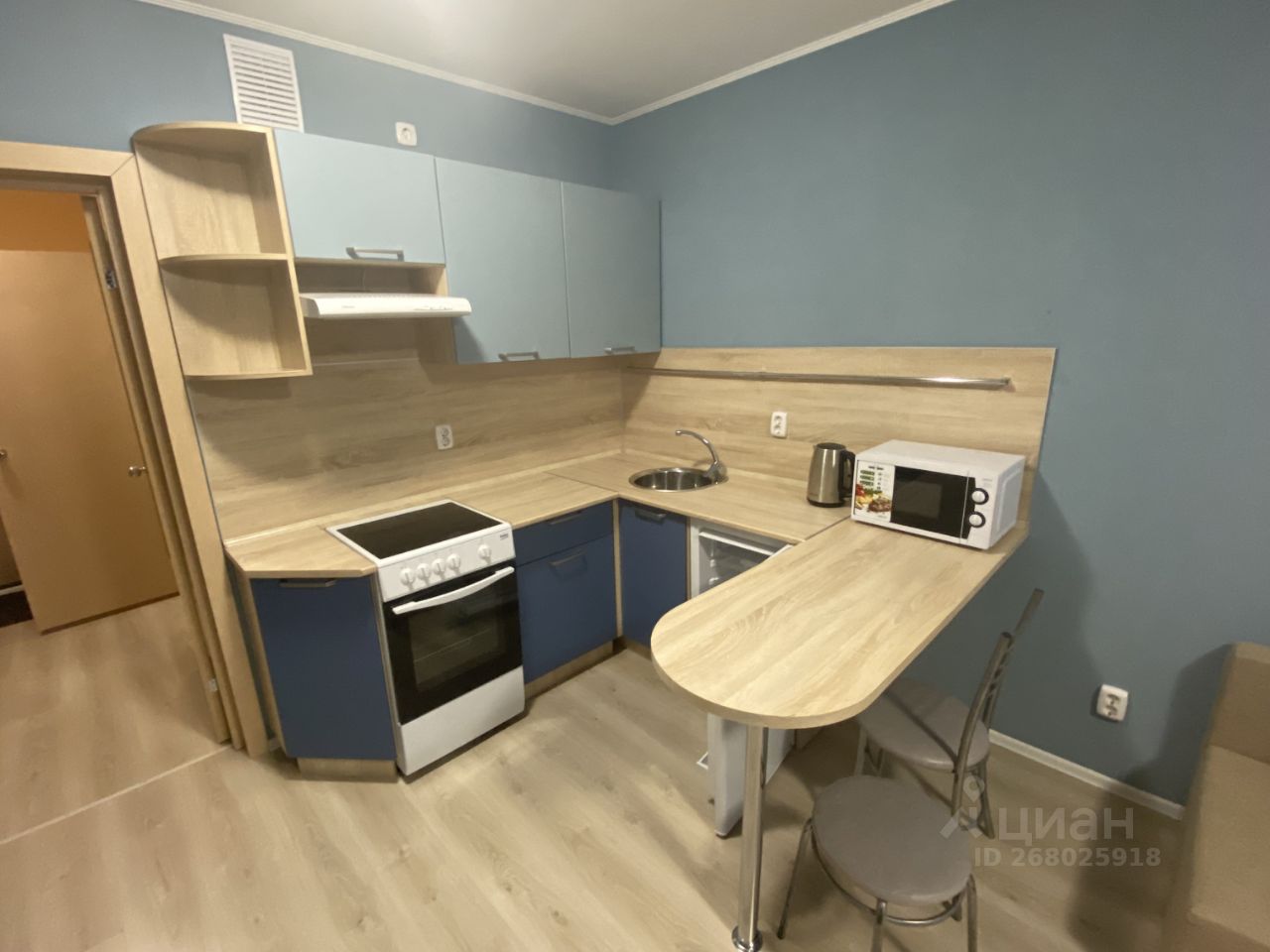 В квартире есть вся мебель необходимая для комфортной жизни, а также техника (чайник, микроволновая печь, стиральная машина, телевизор, большой холодильник, электроплита с духовкой). Все в очень хорошем состоянии. Есть застекленный балкон. На балконе жалюзи.