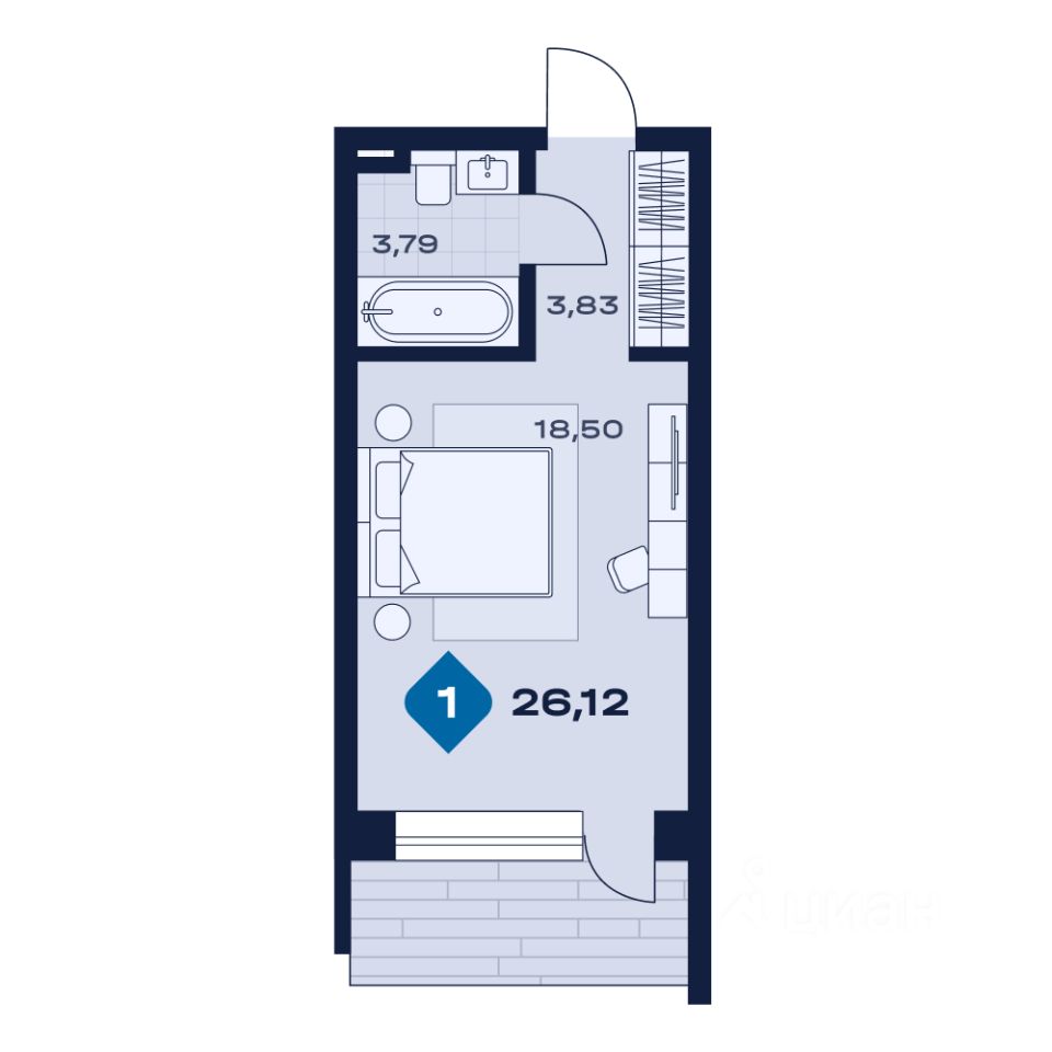 Общая площадь26,12 м2