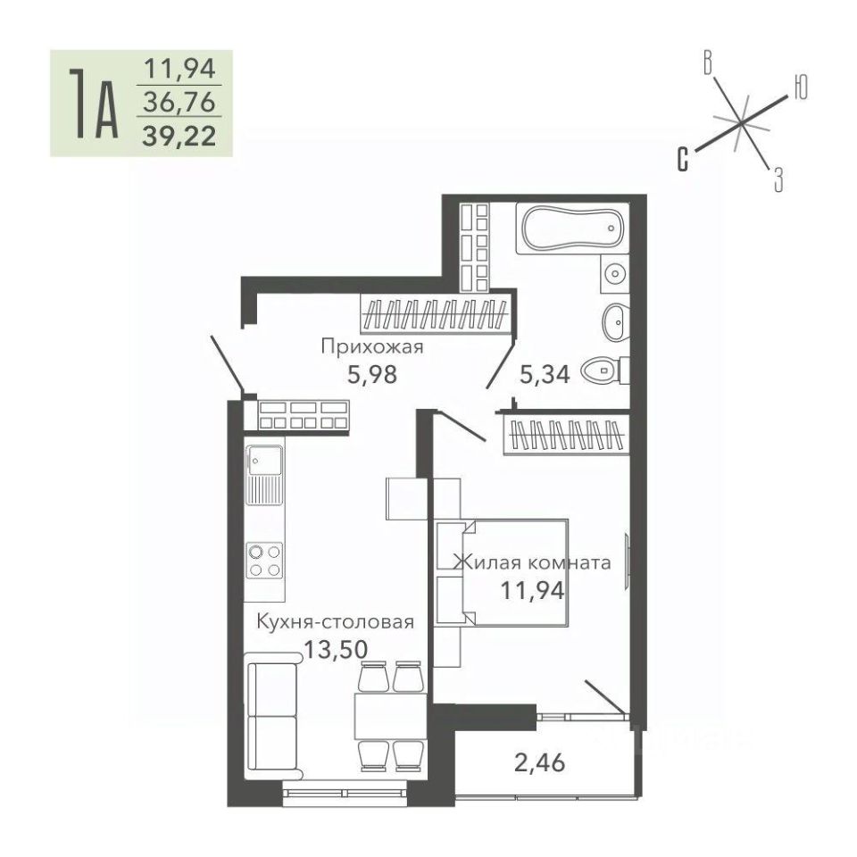 Общая площадь39,22 м2