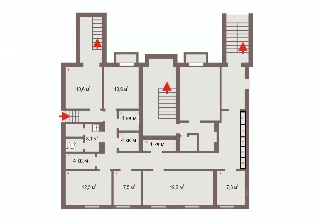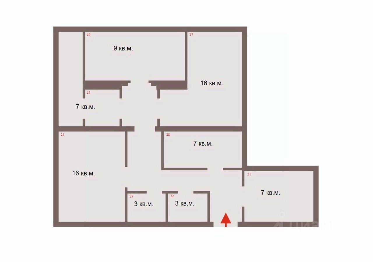 * Офисная нарезка небольшими площадями повышает рентабельность и привлекательность для малого бизнеса.