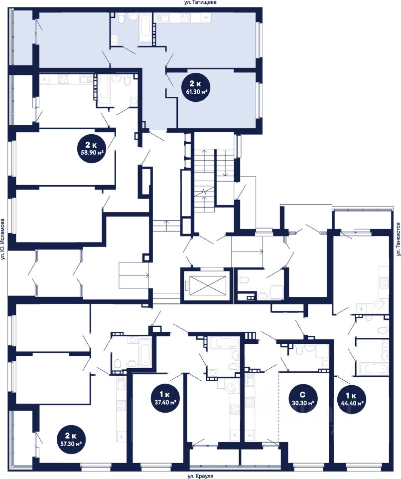 Доступ в подъезды на уровне земли — без барьеров Домофоны в тёплых остеклённых тамбурах Вместительные грузопассажирские лифты во всех секциях Помещения для колясок и самокатов на 1 этаже Удобная навигация с номерами этажей и квартир