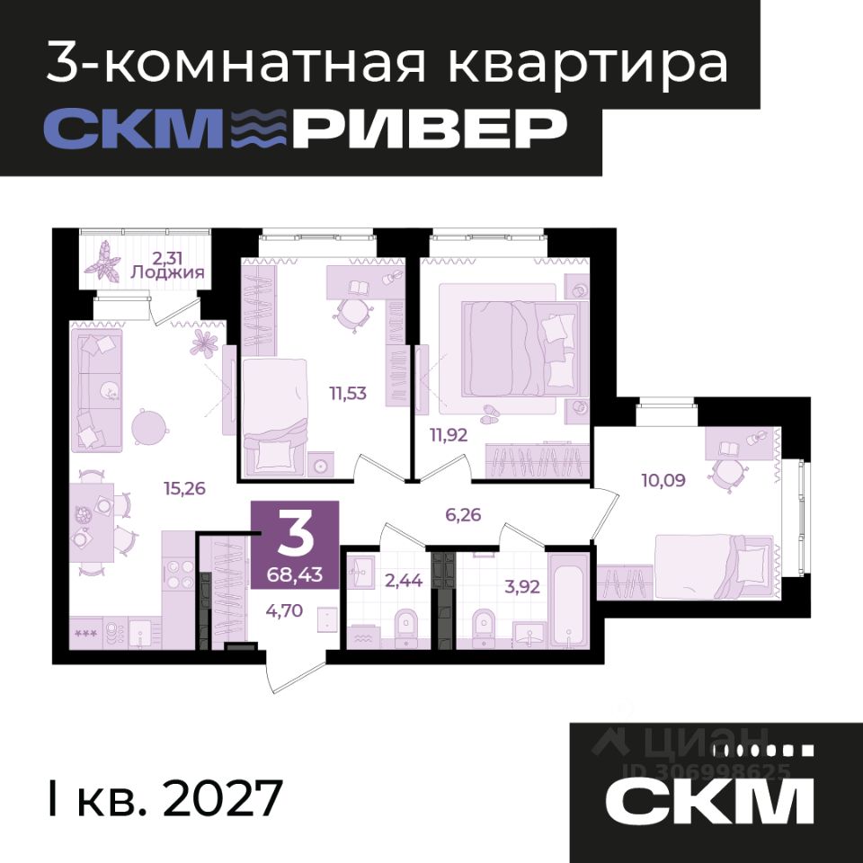 СКМ Ривер жилой комплекс комфорт-класса на берегу Нижне-Исетского пруда. Из окон открываются живописные виды на водоем, горы и лес. В пяти минутах ходьбы находится парк отдыха с благоустроенной набережной. До центра можно доехать за 20 минут на личном или общественном транспорте. Комплекс состоит из двух домов переменной этажности, объединенные общим двором-парком с многоуровневым озеленением. На первом этаже располагается галерея магазинов, где жители смогут найти все необходимое. Приватная территория, двор без машин и система видеонаблюдения делают дом безопасным и комфортным. Пространство двора разделено на зоны: для малышей, для подвижных игр детей постарше, workout-площадки для занятий спортом, а также прогулочные дорожки и уютные уголки для спокойного отдыха. Прозрачные входные группы расположены на уровне земли, домофон находится в теплом тамбуре. Дизайнерский холл оборудован мягкой зоной для ожидания такси, колясочными комнатами, гостевыми санузлами и лапомойками. Разнообразные планировочные решения: от квартир с одной спальней для молодых пар до вариантов с тремя спальнями для семей с несколькими детьми. Для тех, кто хочет сделать дизайн-проект самостоятельно, мы предлагаем квартиры в предчистовом варианте, также можно заказать чистовую отделку. Все подробности о проекте и условиях покупки в отделе продаж СКМ Девелопмент.
