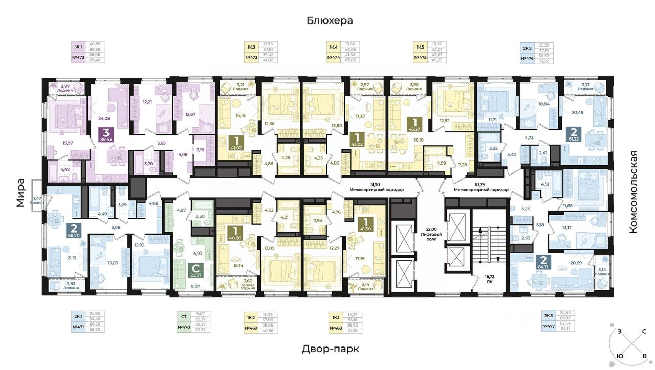 продам 1-к, Блюхера, 269 520 000 ₽