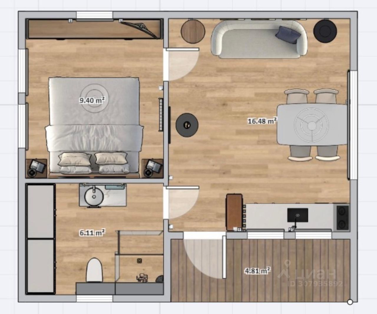 Общая площадь42 м2