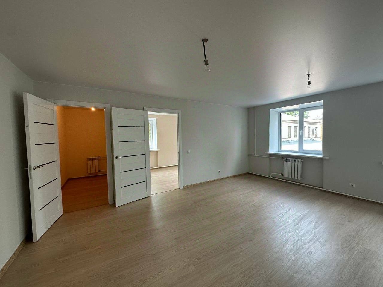 Во всей квартире установлены пластиковые окна, выровнены потолки, постелен качественный ламинат, установлены межкомнатные двери и качественная сейф-дверь.