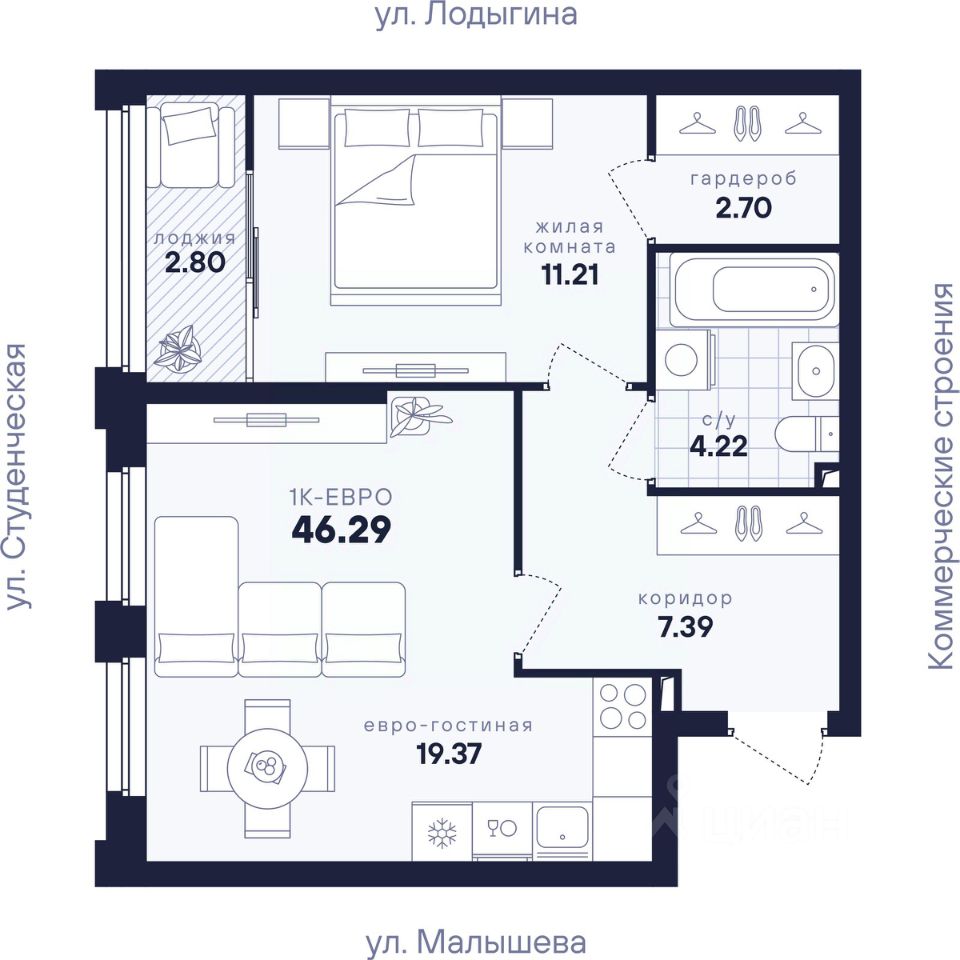 Общая площадь46,29 м2