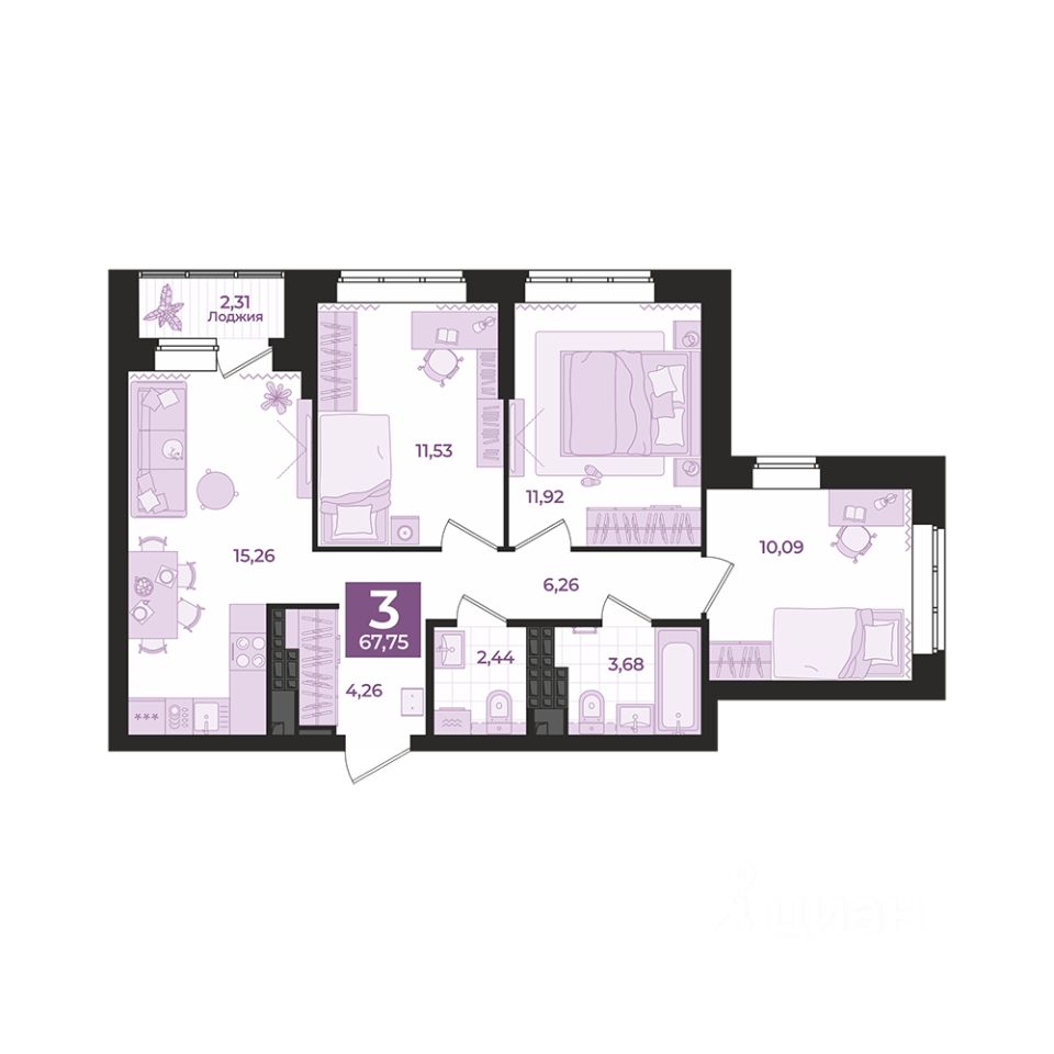 Общая площадь67,75 м2