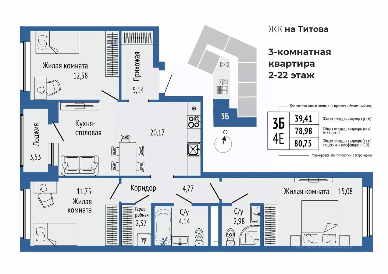 продам 3-к, Титова, 19.1 стр.11 951 051 ₽