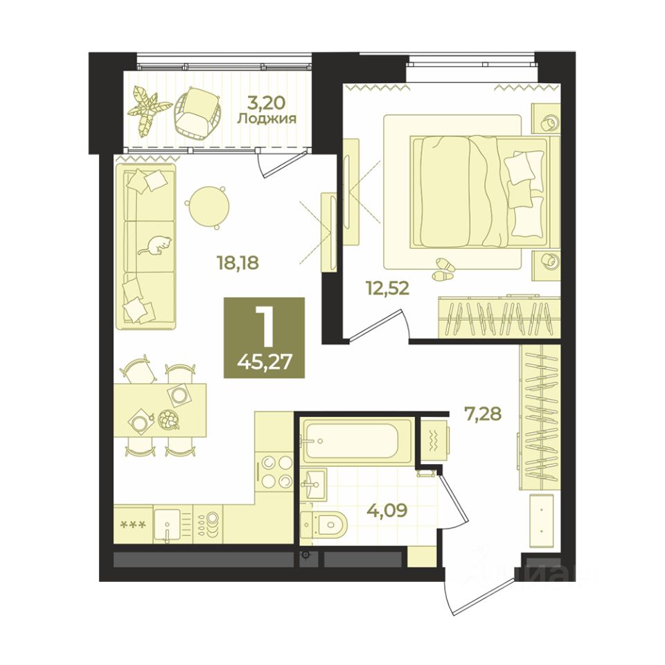 Общая площадь45,27 м2