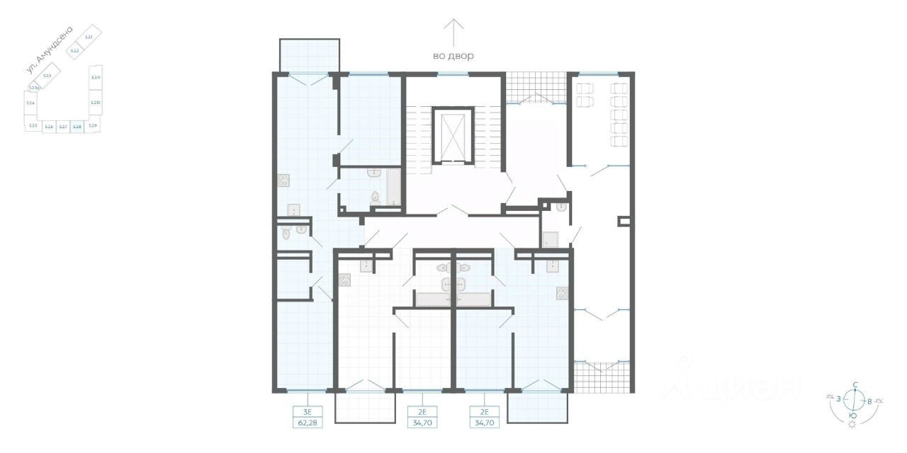 Квартиры комфорт-класса площадью до 77 кв.м с чистовой отделкой. Стильные и уютные холлы с помещениями для детских колясок и велосипедов.
