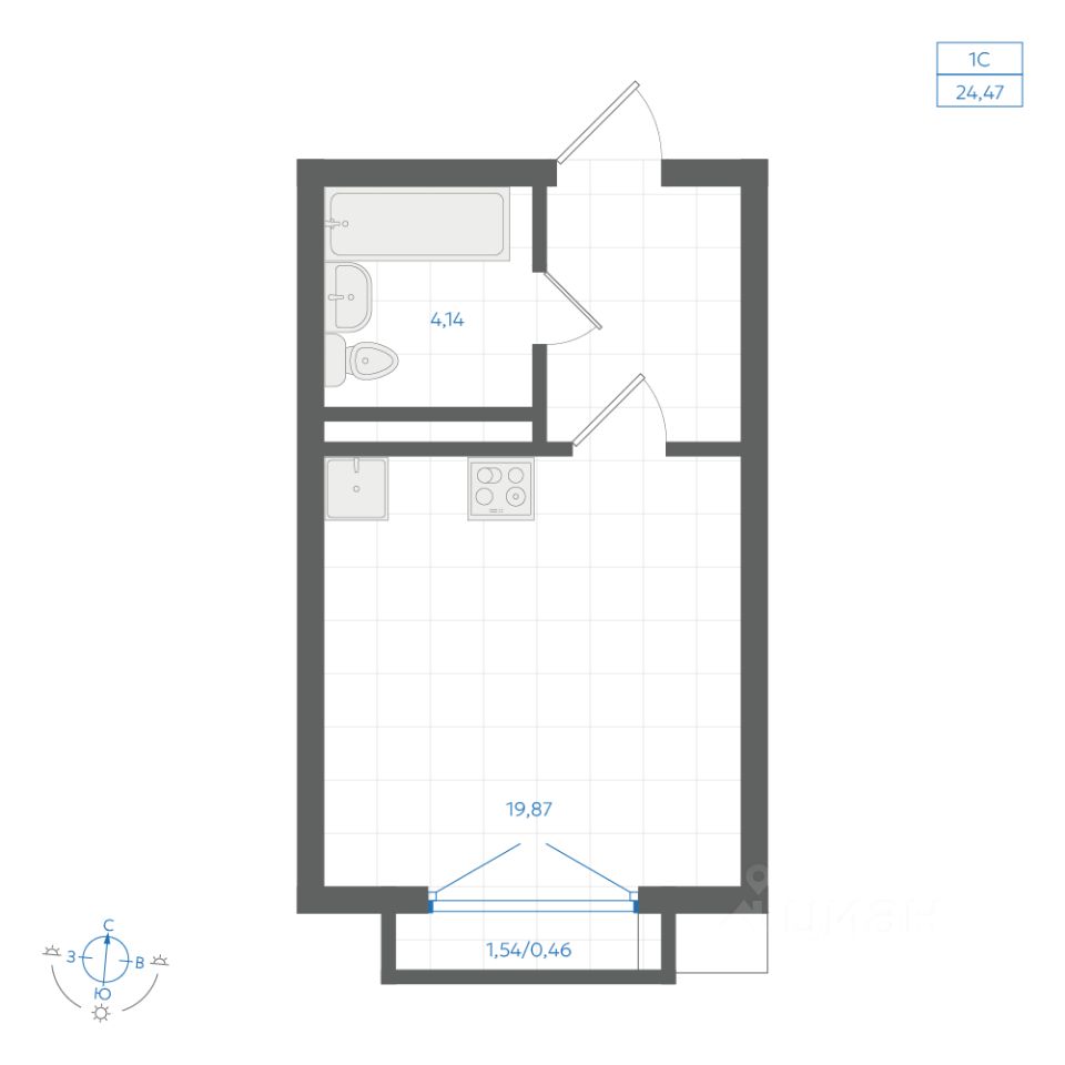 Общая площадь24,67 м2