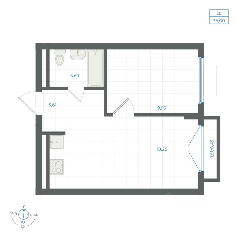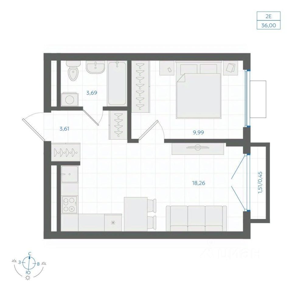 Общая площадь36 м2