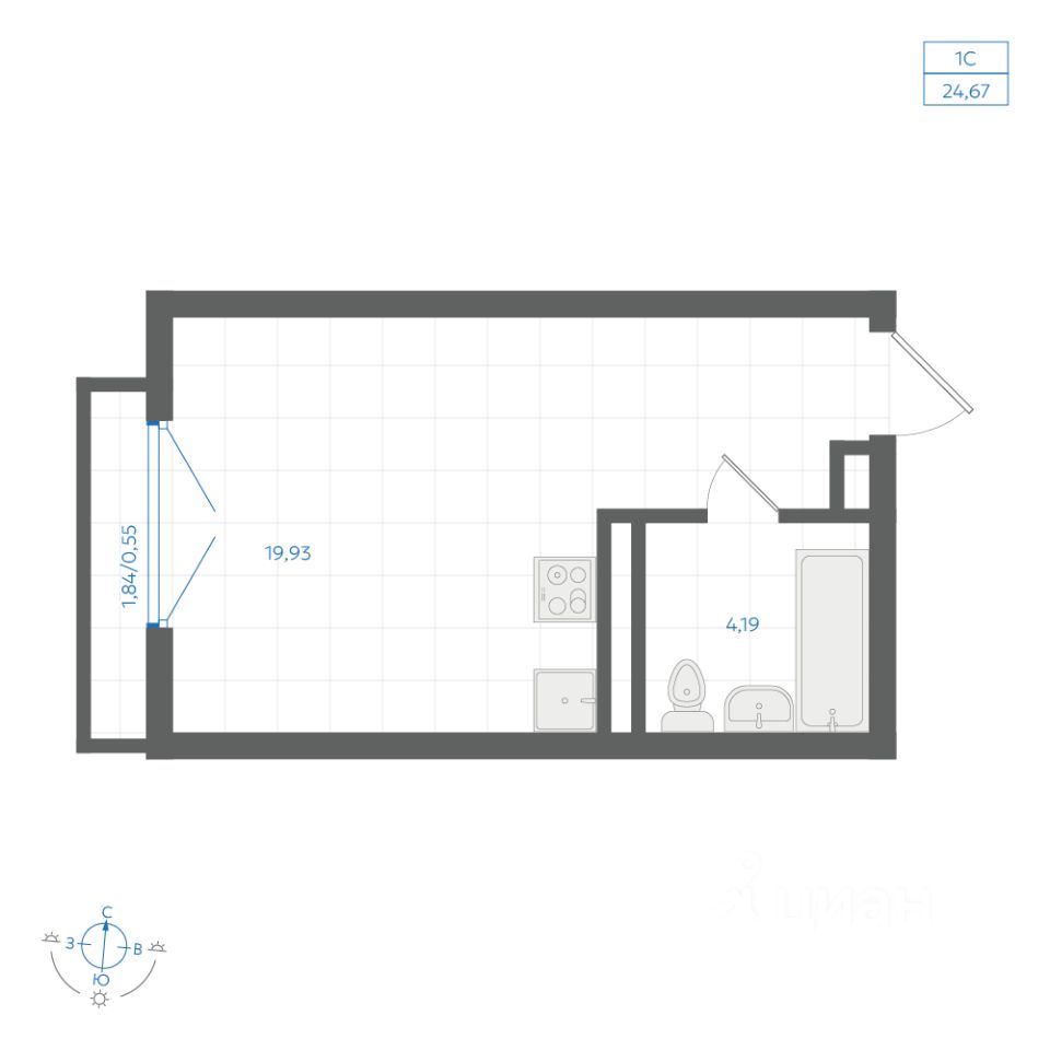 Общая площадь24,72 м2