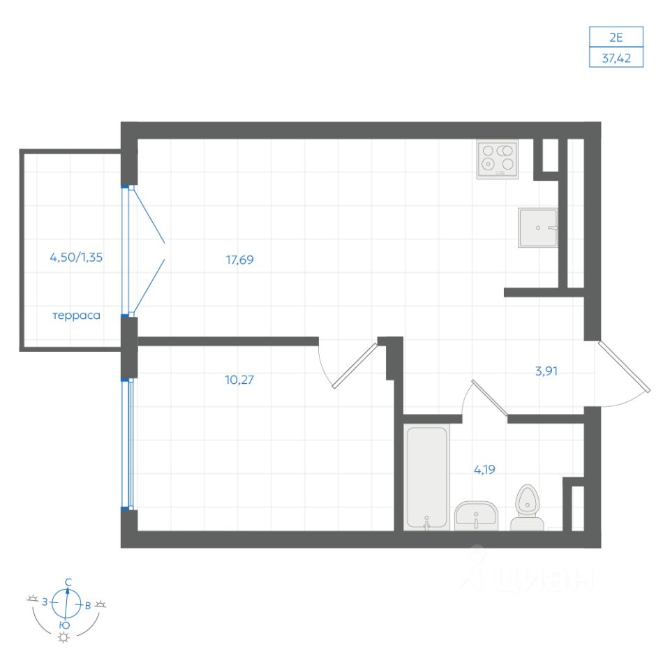 Общая площадь37,42 м2