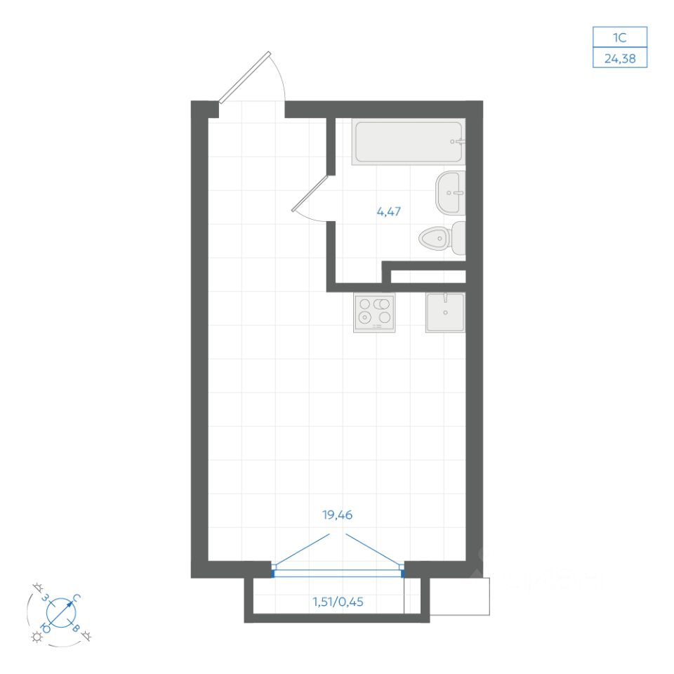 Общая площадь24,38 м2
