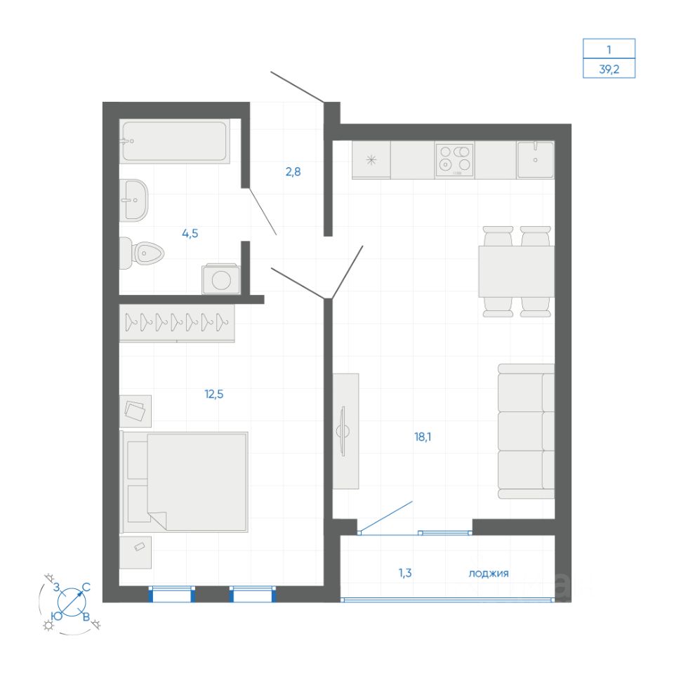 Общая площадь38,9 м2