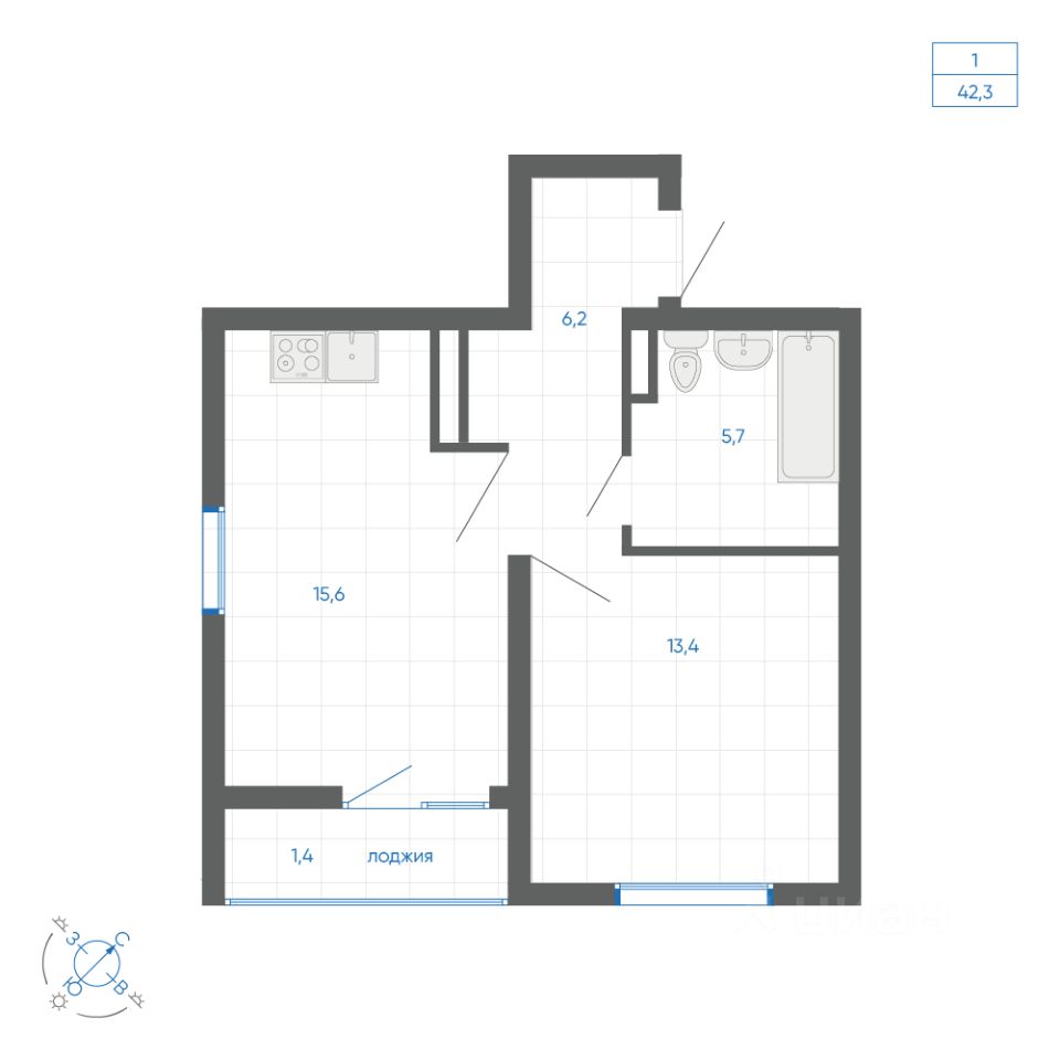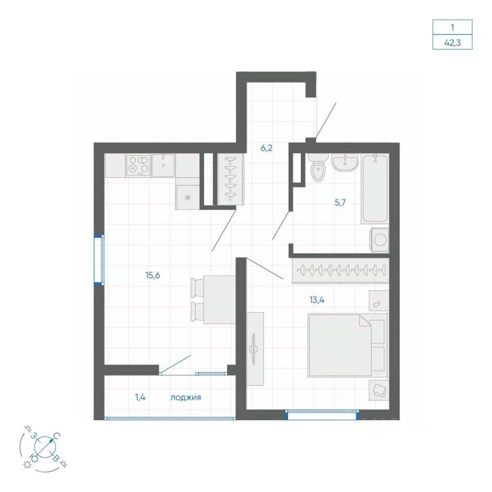Общая площадь42,3 м2