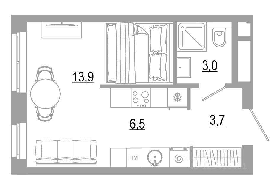В комплексе представлено 25 планировок с площадью квартир от 21 м² до 65 м² для разных жизненных сценариев жизни: