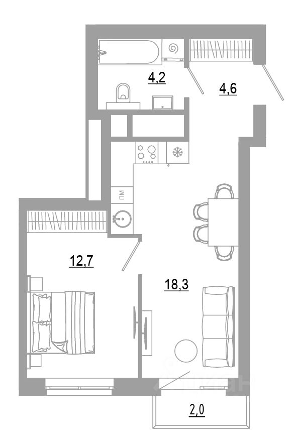 \- квартиры с кухней-гостиной и отдельной комнатой,
