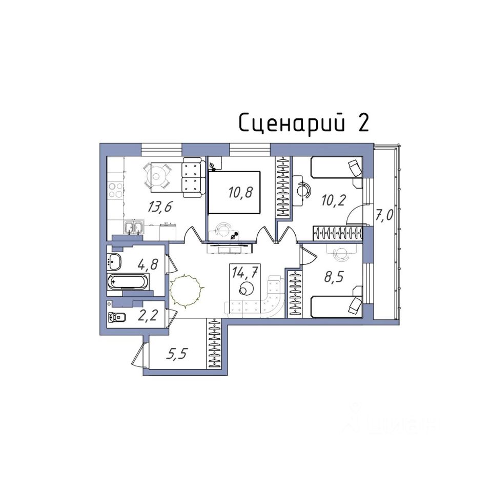 Общая площадь77,7 м2