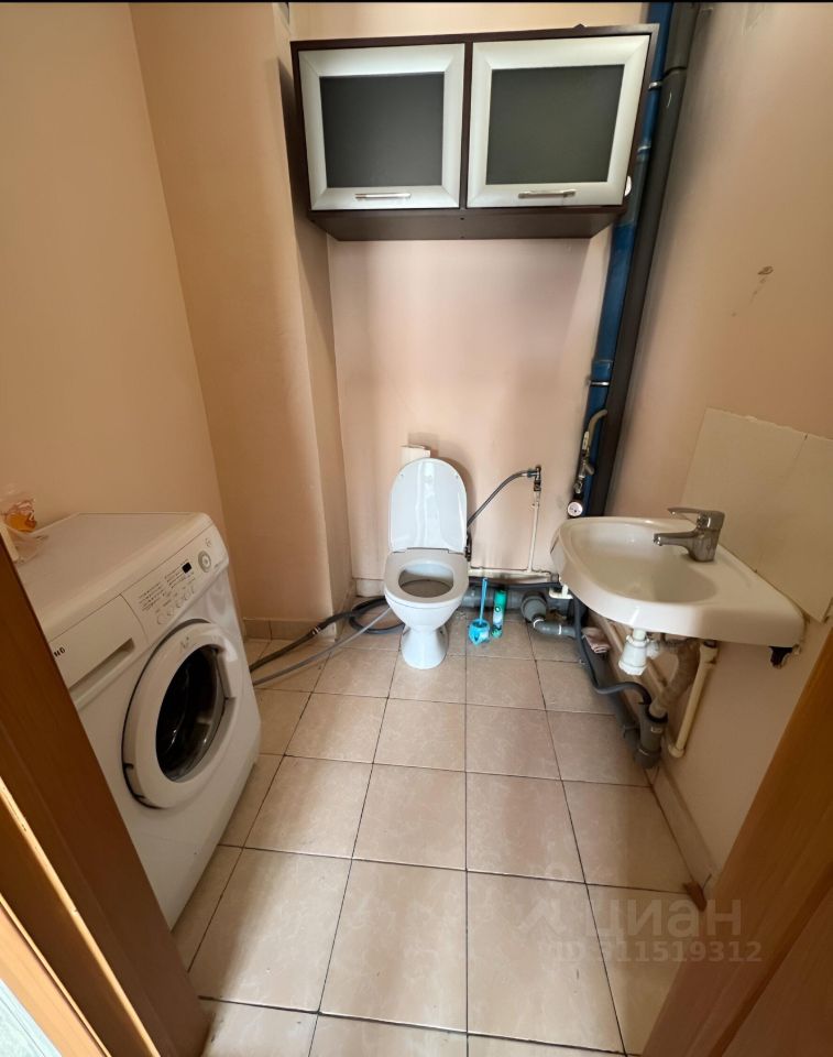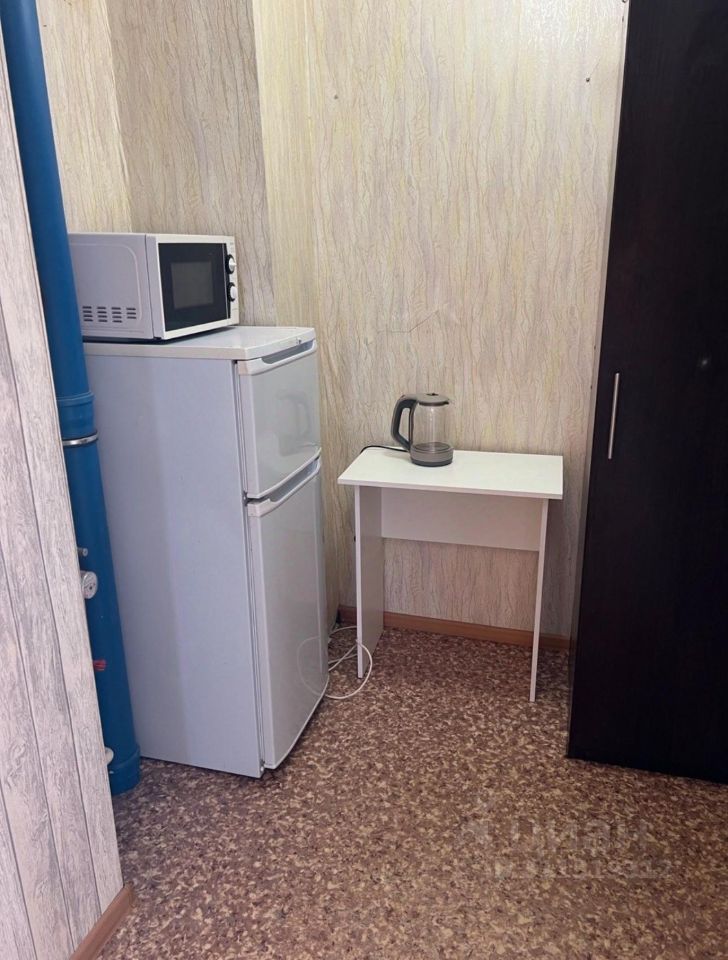 В квартире, техника: холодильник, стиральная машина, микроволновая печь.