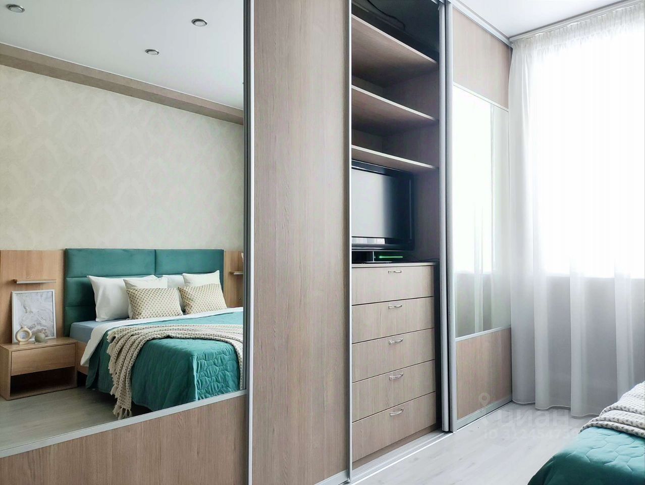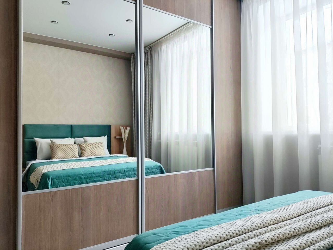 Окна выходят во двор, поэтому не слышно шума дорог
