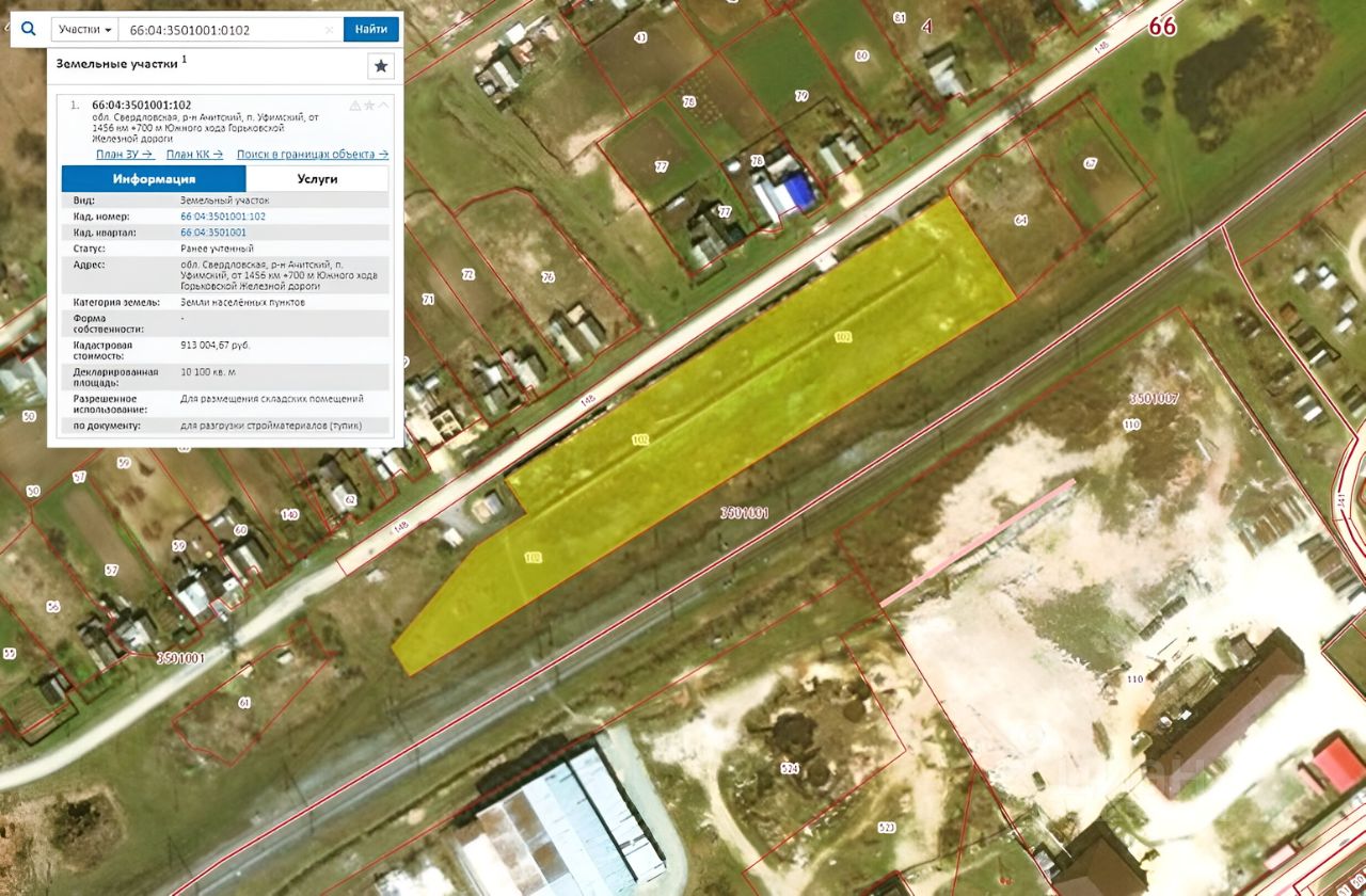 Кадастровый номер ЗУ 66:04:3501001:0102