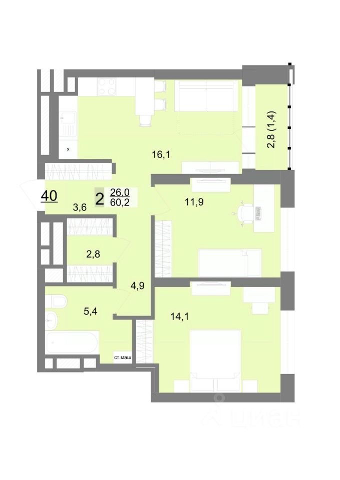 Общая площадь60,2 м2
