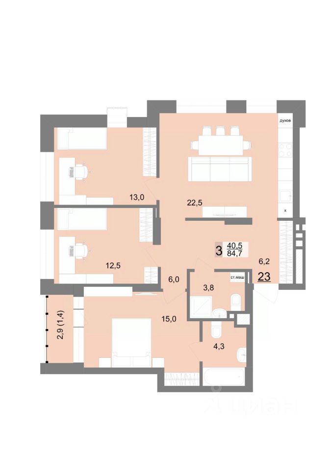 Общая площадь84,7 м2