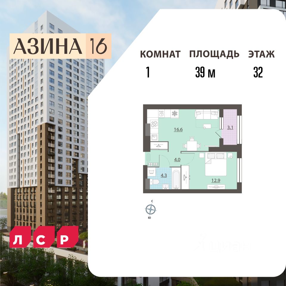 Квартира располагается на 32 этаже 32-этажного дома в ЖК Азина, 16. Застройщик - ЛСР, сдача дома - I квартал 2026 года, высота потолков 2.72 м, есть мусоропровод. Подземная парковка. Обеспечение безопасности: видеонаблюдение, консьерж, пропускная система. Инфраструктура: школа, детский сад, детские площадки, спортивные площадки, места для отдыха, супермаркет, коммерческие объекты.