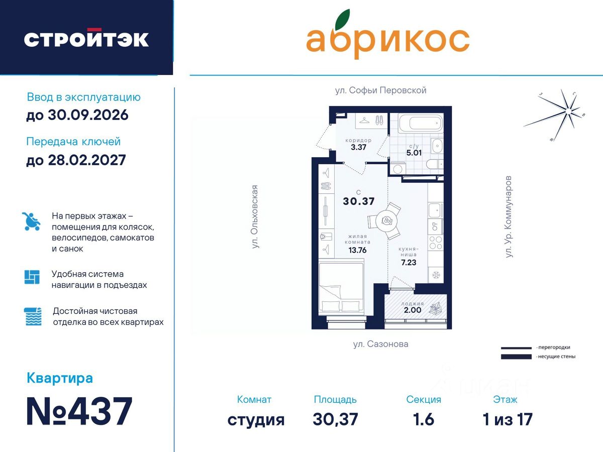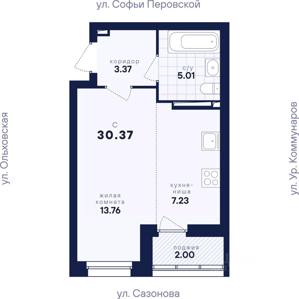 Общая площадь30,37 м2