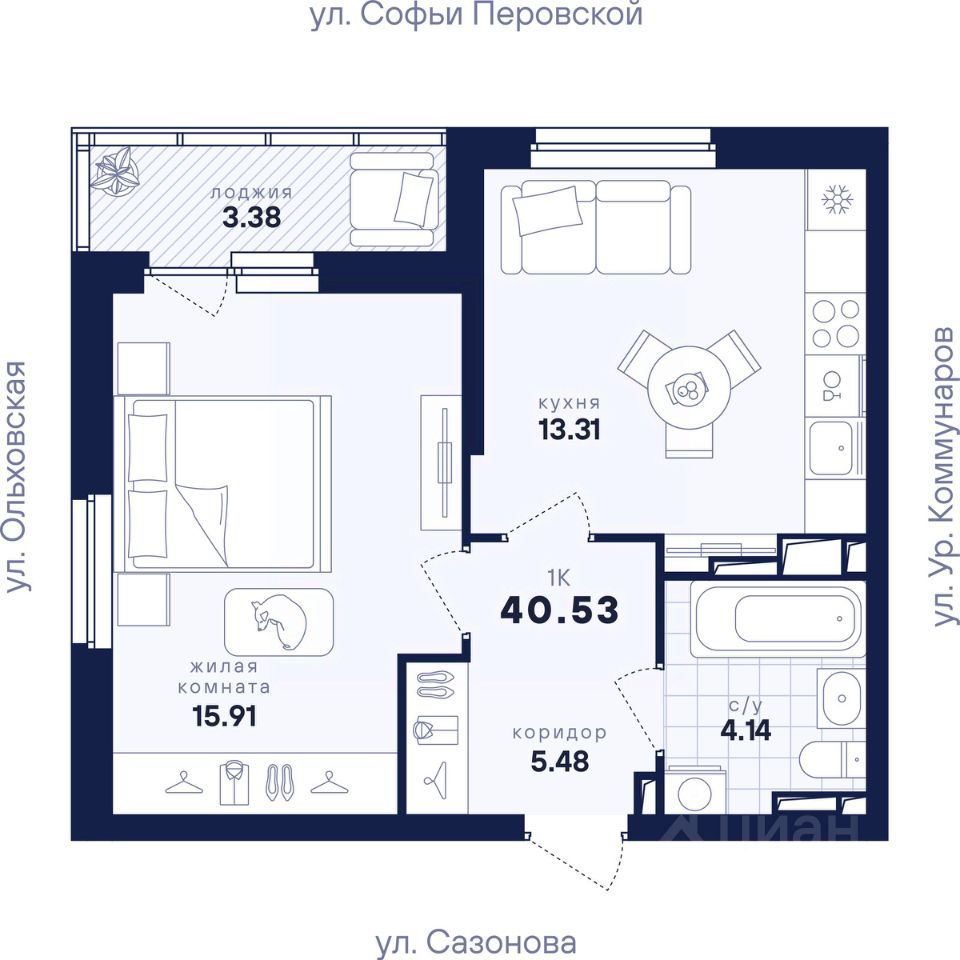 Общая площадь40,53 м2