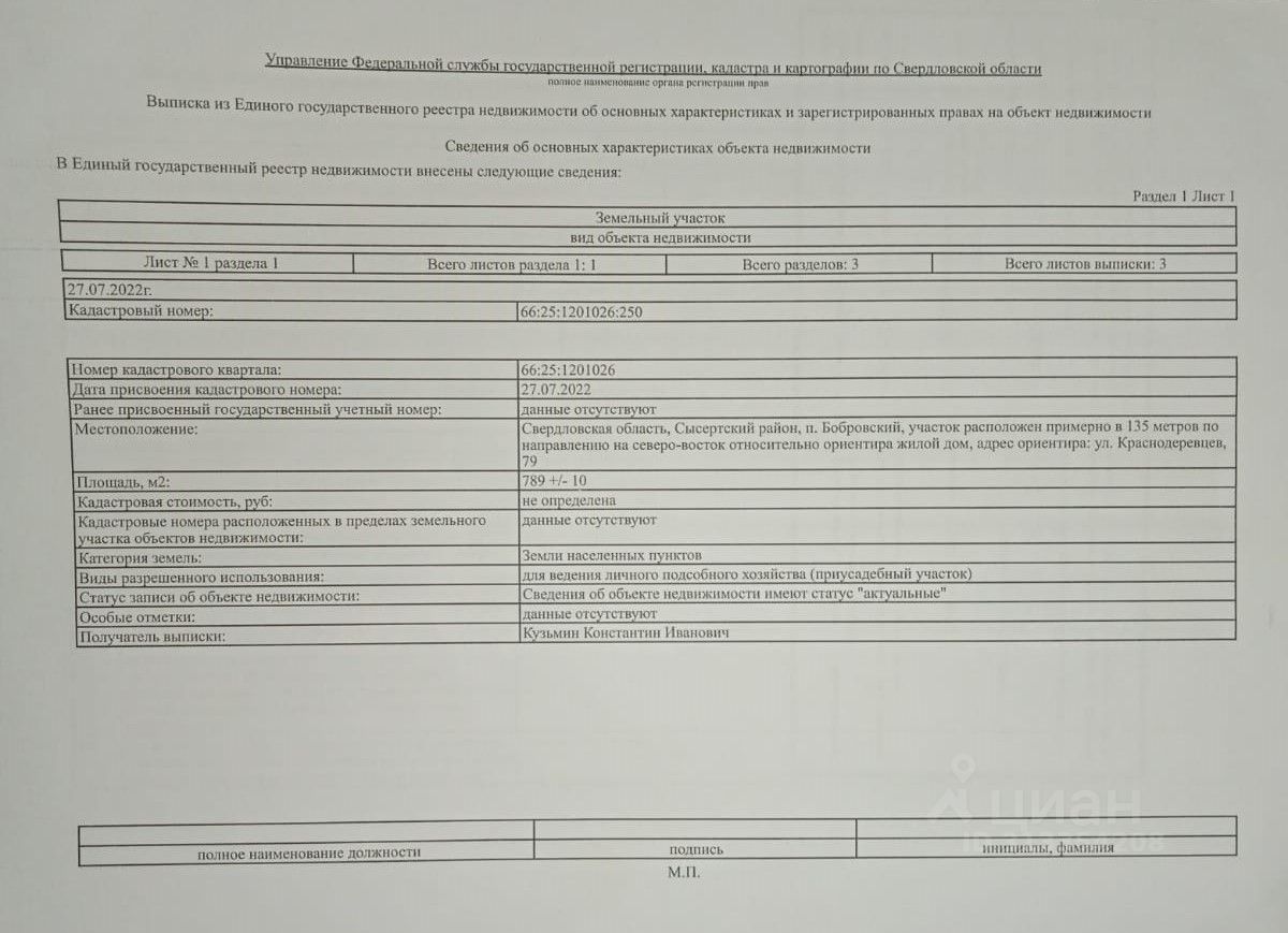 Кадастровый номер: 66:25:1201026:250