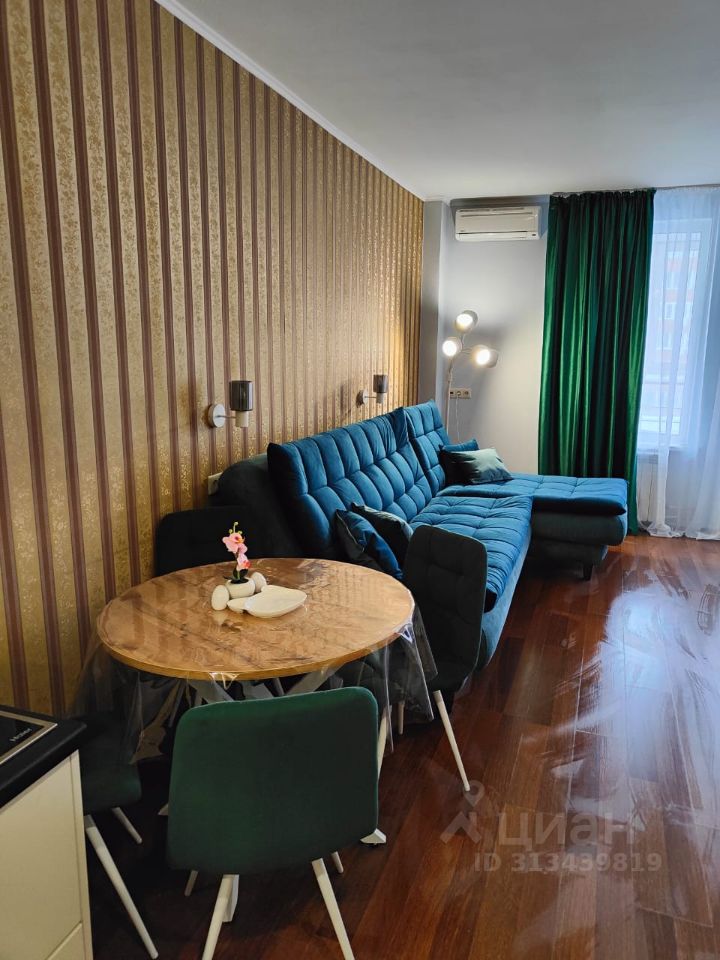 В квартире есть всё для комфортного проживания: косметический ремонт, кондиционер, холодильник, телевизор и стиральная машина. Обстановка включает мебель на кухне и в комнате, а также выход на балкон. Ванная комната оборудована душевой кабиной и отдельным санузлом. Окна выходят на улицу, что обеспечивает хорошее естественное освещение.