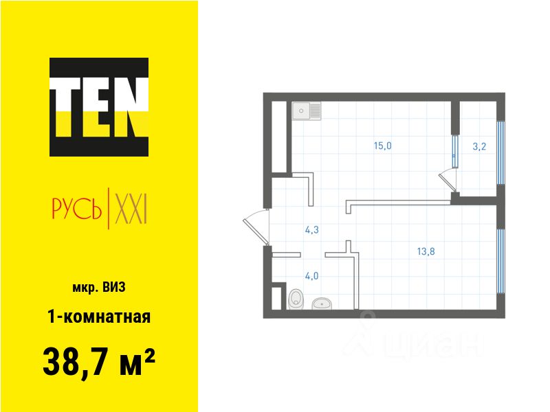 Квартира бизнес-класса в ЖК ''Русь XXI'' на ВИЗе от застройщика TEN девелопмент! Ключи во 2 квартале 2027 года. ЖК ''Русь XXI'' - это 10-секционный дом высотой от 7 до 18 этажей, из окон которого открываются вдохновляющие виды на Верх-Исетский пруд и огни мегаполиса. Двор-сад Двор закрыт от машин и посторонних, при этом на территории всегда много света и пространства благодаря разнице высот дома. Богатое озеленение, разнообразная геопластика, детские игровые и спортивная площадки, зоны для отдыха - все, чтобы каждому жителю было приятно проводить здесь время. Контроль доступа, видеонаблюдение и круглосуточная охрана обеспечат безопасность для себя и близких. Эстетика и комфорт Входные группы прозрачные и сквозные, расположены на уровне тротуара, чтобы было удобно завозить коляску или велосипед. Холлы оформлены в едином стиле - светлые пространства с отделкой под дерево и камень. Для удобства каждого жителя здесь есть мягкие и коворкинг-зоны, колясочная и лапомойка. Для автолюбителей - подземный паркинг. Настоящая свобода Большая площадь и высота потолка 3 м сделает квартиру визуально еще просторнее. При таких размерах гораздо проще подобрать оптимальный вариант дизайна интерьера для любой семьи. Отделка под чистовую. В санузле — монолитный потолок, на полу — гидроизоляция и стяжка, стены оштукатурены. В одном санузле установлены унитаз и раковина. В остальных помещениях потолок — монолит, на полу — стяжка, стены оштукатурены. Выгодные условия оплаты: - акционные предложения - ипотека от ведущих банков, семейная ипотека - рассрочка от застройщика - трейд-ин Звоните или оставляйте заявку, чтобы узнать больше и забронировать квартиру!