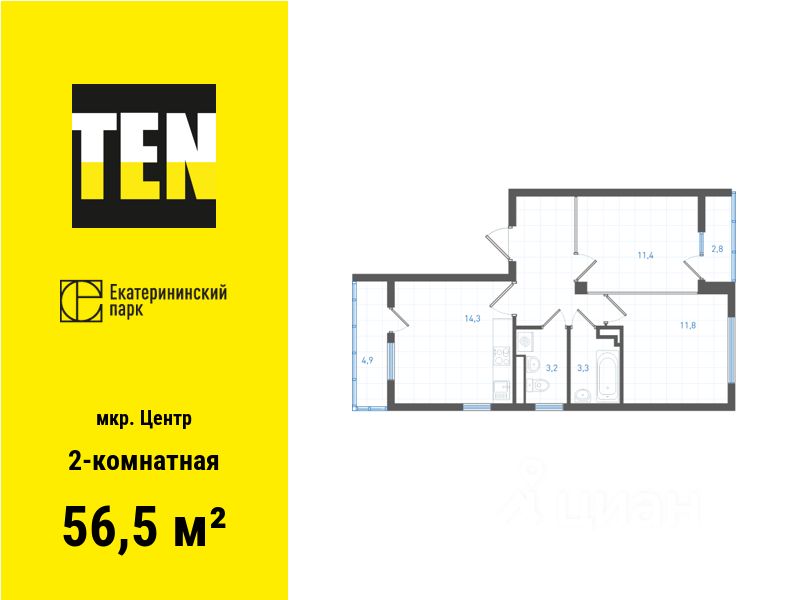 Общая площадь56,5 м2