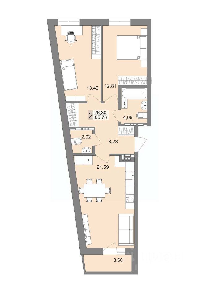Общая площадь64,9 м2