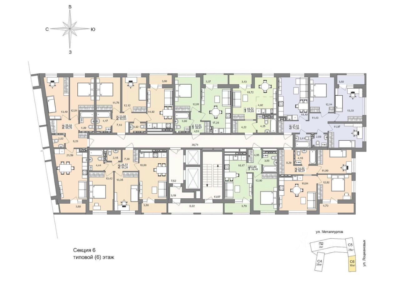 Дому присвоен адрес: ул. Металлургов, 63 Квартал расположен в районе улиц Металлургов, Лоцмановых и Отрадной. На первых этажах предусмотрены коммерческие помещения, а сами дома ''парят'' над землей.