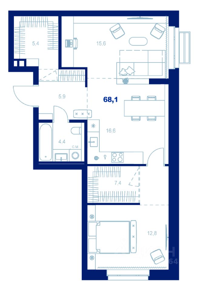 Здесь можно создать отдельную спальню, кабинет или просторную гостиную — планировка легко адаптируется под ваш стиль жизни.