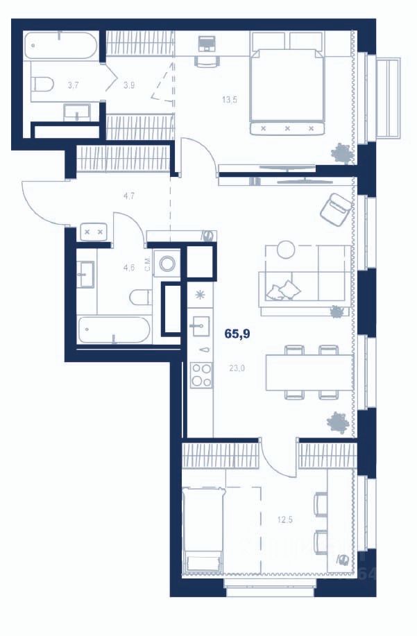 Здесь можно создать отдельную спальню, кабинет или просторную гостиную — планировка легко адаптируется под ваш стиль жизни.