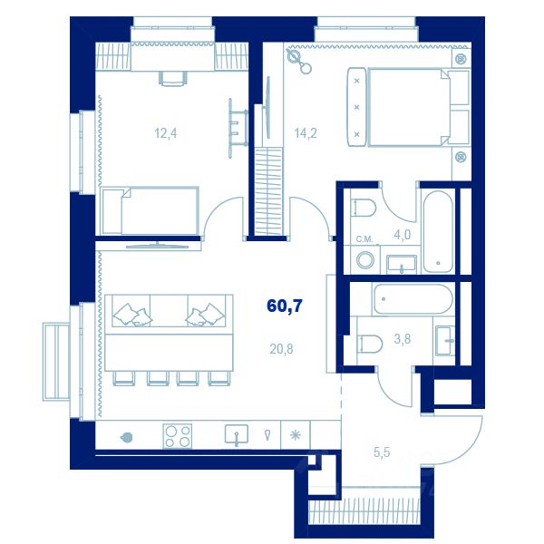 Здесь можно создать отдельную спальню, кабинет или просторную гостиную — планировка легко адаптируется под ваш стиль жизни.
