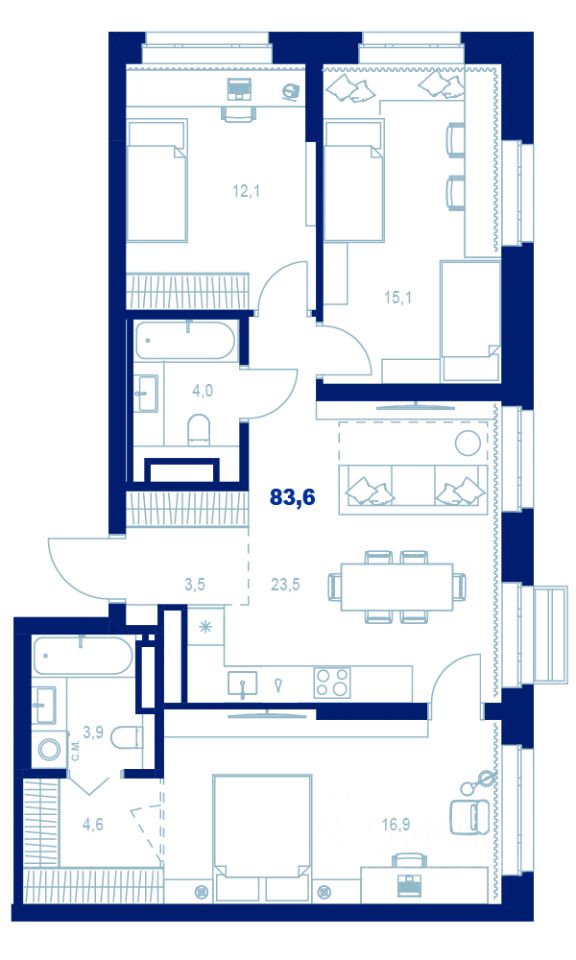 Просторная квартира в ''Атлас Ауро'' — выбор большой семьи и тех, кто ценит личное пространство.
