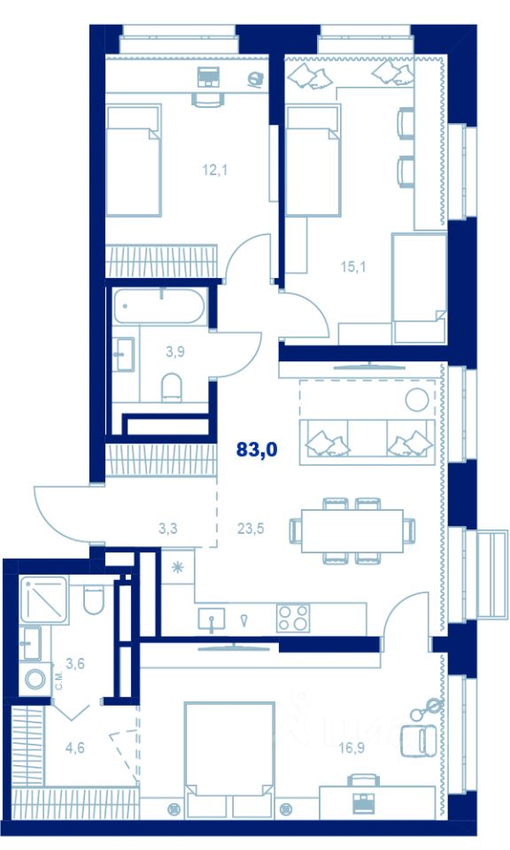 Просторная квартира в ''Атлас Ауро'' — выбор большой семьи и тех, кто ценит личное пространство.