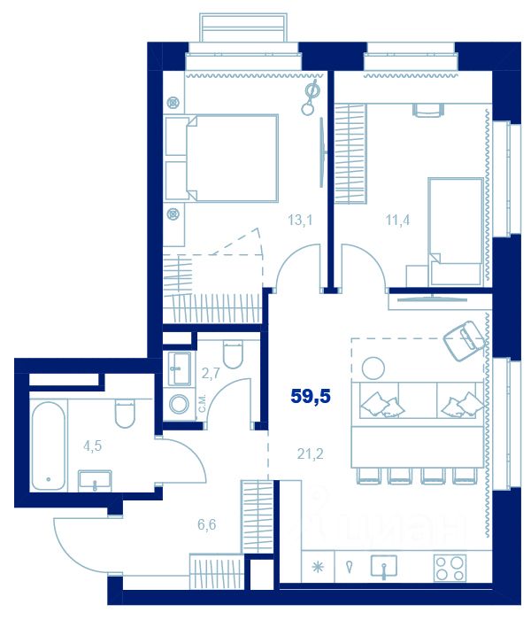 Здесь можно создать отдельную спальню, кабинет или просторную гостиную — планировка легко адаптируется под ваш стиль жизни.