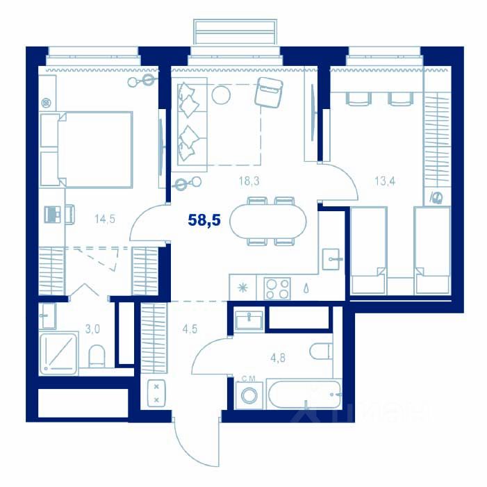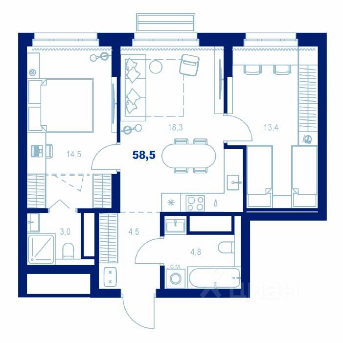 Здесь можно создать отдельную спальню, кабинет или просторную гостиную — планировка легко адаптируется под ваш стиль жизни.